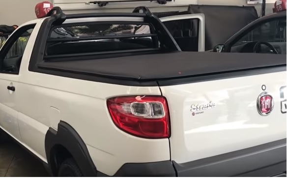 Capota Marítima para Strada com perfil de fechamento contínuo em toda extensão lateral e em material de polietileno de baixa densidade facilita o manuseio para abrir e fechar a capota;